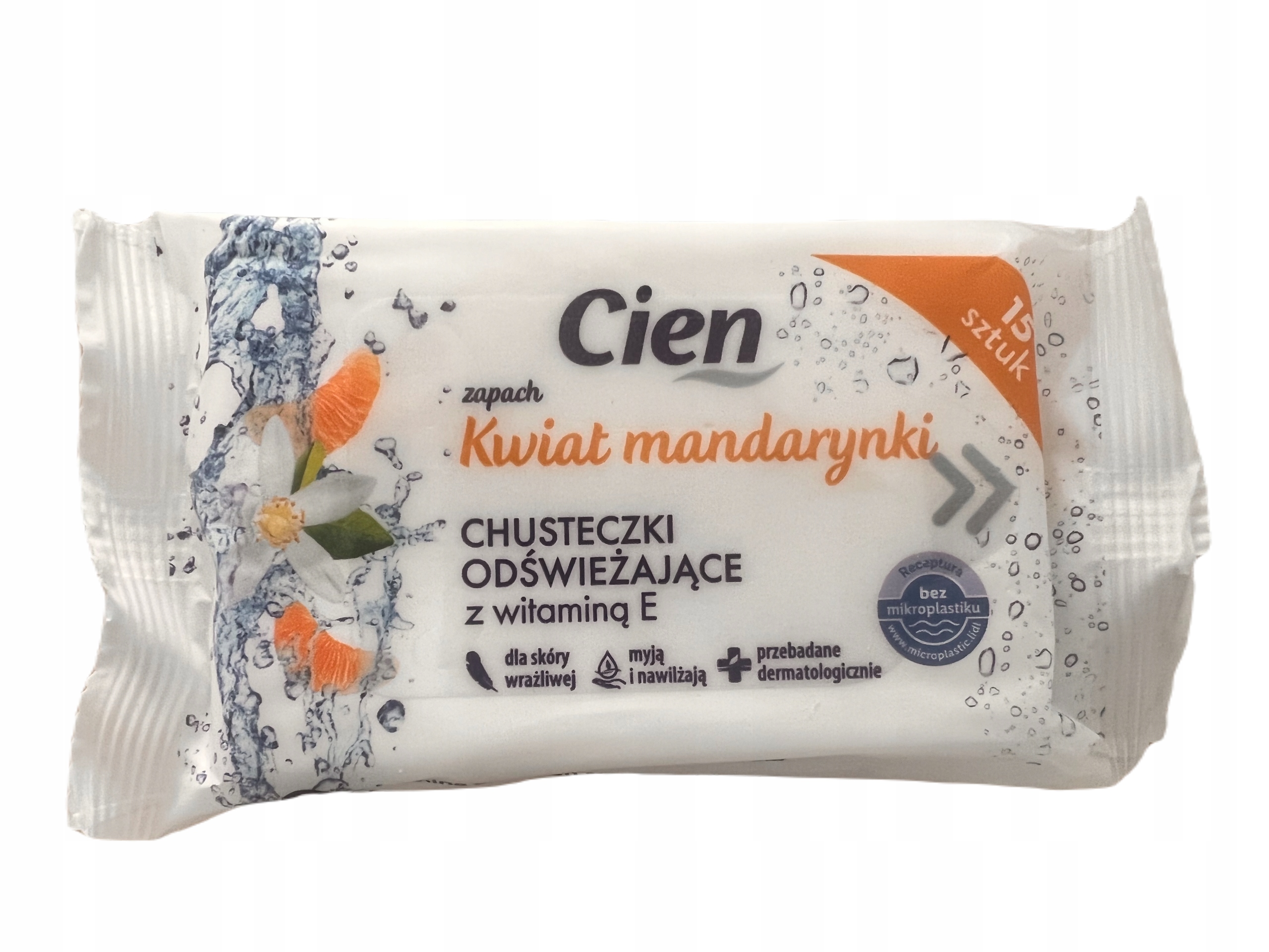 Chusteczki odświeżające o zapachu kwiatu mandarynki.