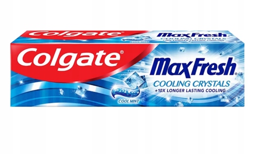 Pasta Colgate Max Fresh z chłodzącymi kryształkami daje zupełnie nowe doznanie świeżości. Technologia FreshFX zapewnia świeżość, która trwa 10 razy dłużej w porównaniu ze zwykłą pastą z fluorem.