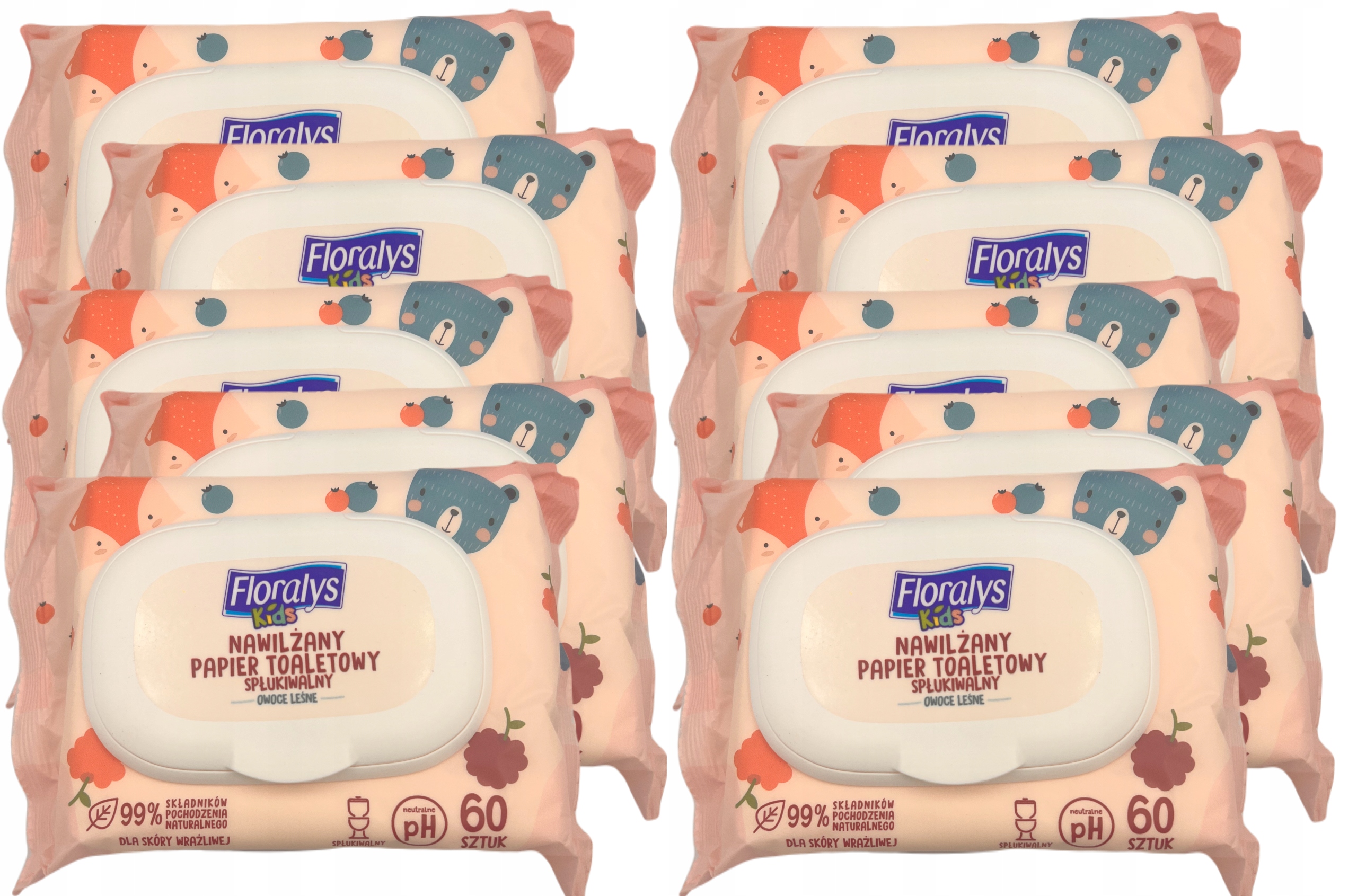 Floralys KIDS – Nawilżany papier toaletowy dla skóry wrażliwej o zapachu owoców leśnych