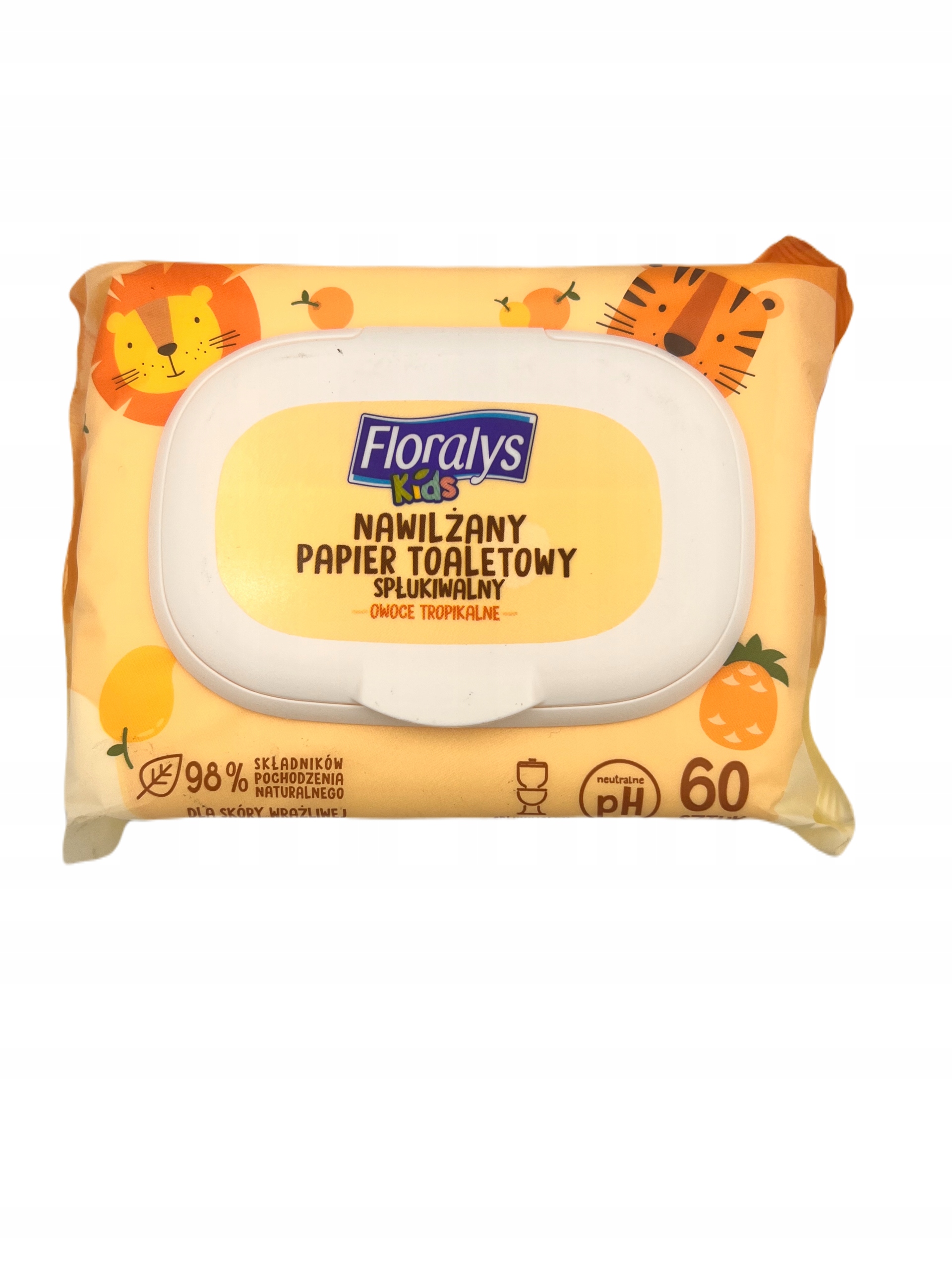 Floralys KIDS – Nailżany papier toaletowy dla skóry wrażliwej o zapachu owoców tropikalnych.