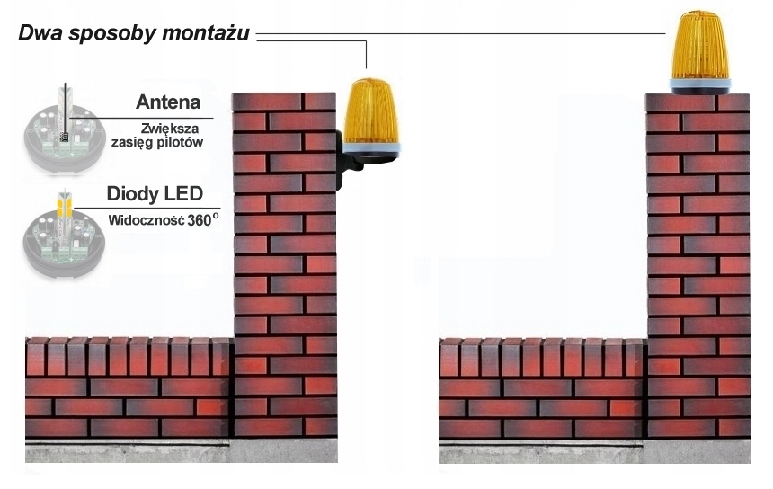 - Skład zestawu: Napęd, 2 piloty, zestaw fotokomórek, lampa ostrzegawcza