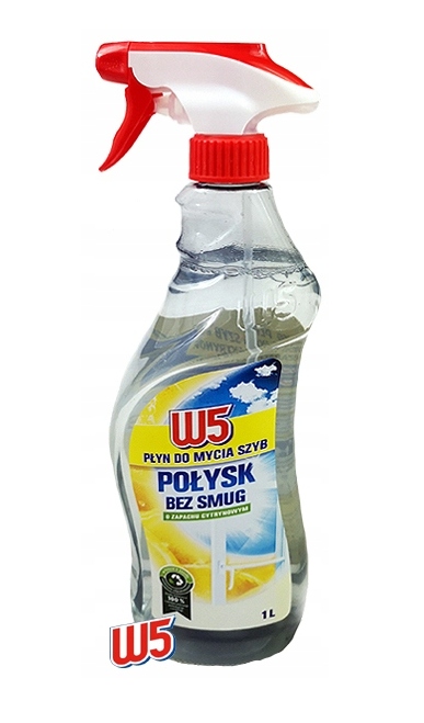 Niezwykle wydajny, wysokiej jakości płyn do mycia szyb W5 w wersji CYTRYNOWEJ z dodatkiem alkoholu, który nie pozostawia smug i doskonale czyści szklane powierzchnie.